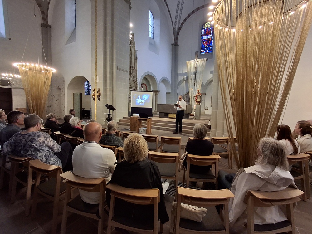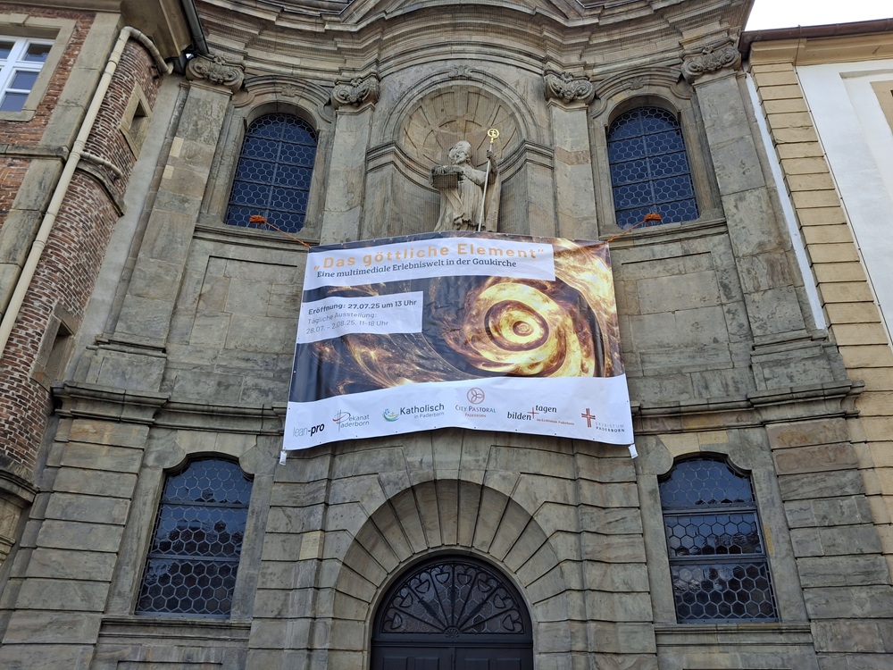 Die Gaukirche St. Ulrich in Paderborn stand in der Libori-Woche 2025 ganz im Zeichen der Schöpfungsthematik. Unter dem Motto „Das göttliche Element“ konnten die Besucherinnen und Besucher ein vielseitiges Programm aus Lesungen, Vorträgen, Kulturveranstaltungen, Informationsständen, Mittagsimpulsen und Mitmachaktionen zu Klimaschutz, Klimagerechtigkeit und Nachhaltigkeit erleben. Highlight waren die immersive Mulimedia-Installation sowie eine große Kunstinstallation im Altarbereich.
